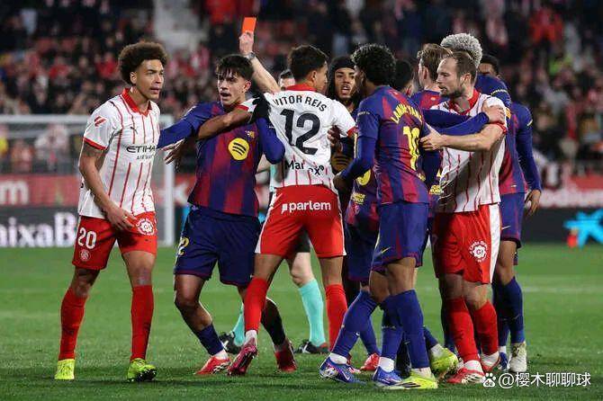 比赛第90 9分钟,赫罗纳队乔尔·罗卡凶狠的铲球被红牌罚下,但是比赛时间所剩无几,巴萨虽然多一人作战,但是已经无力改变结果,最终他们爆冷输球了!